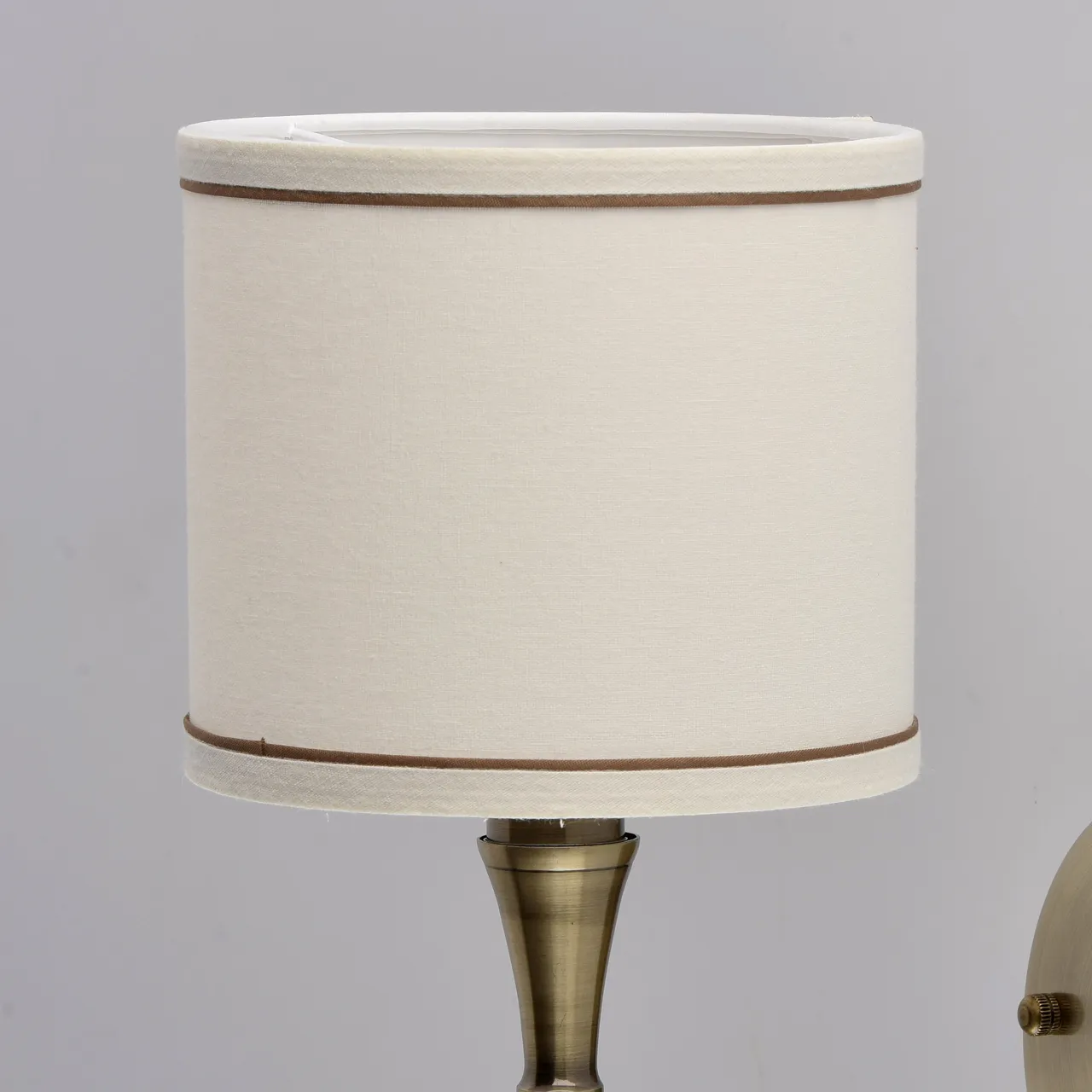 Металлическое основание цвета бронзы. Абажур -текстиль сливочного цвета