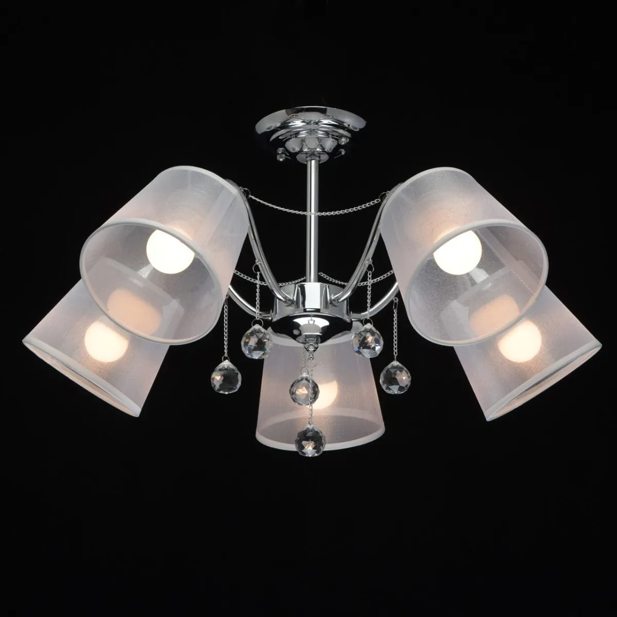 Основание/ металл/ хром. Абажуры/текстиль/ белый. Декор/ прозрачный хрусталь